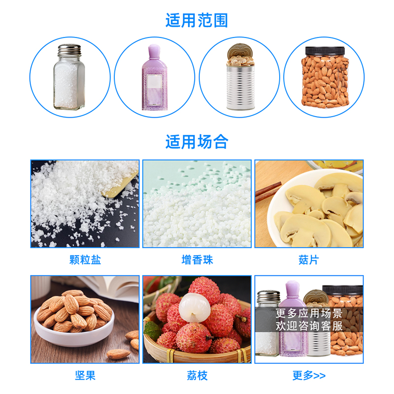 該設(shè)備適用于不規(guī)則的塊狀和顆粒狀物料的計(jì)量包裝,如各類水果、糖果、膨化食品、小餅干、炒貨干果、砂糖、速凍食品等。